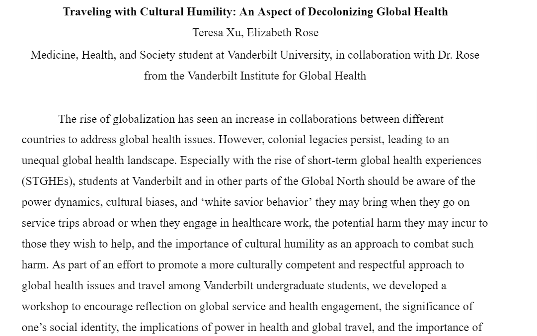 Traveling with Cultural Humility: An Aspect of Decolonizing Global Health |