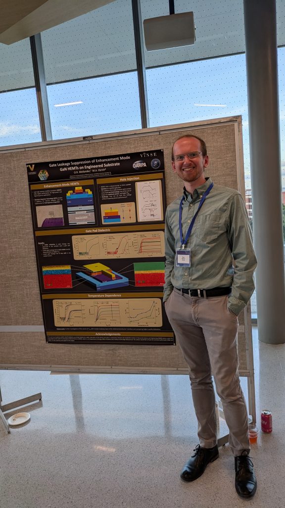 VINSE graduate student Owen Meilander, a Ph.D. student in Interdisciplinary Materials Science working under the direction of Professor Mona Ebrish, received the Best Student Poster Presentation Award at the 2025 Lester Eastman Conference on High Performance Devices, held August 11–12 at the University of Florida in Gainesville, FL.