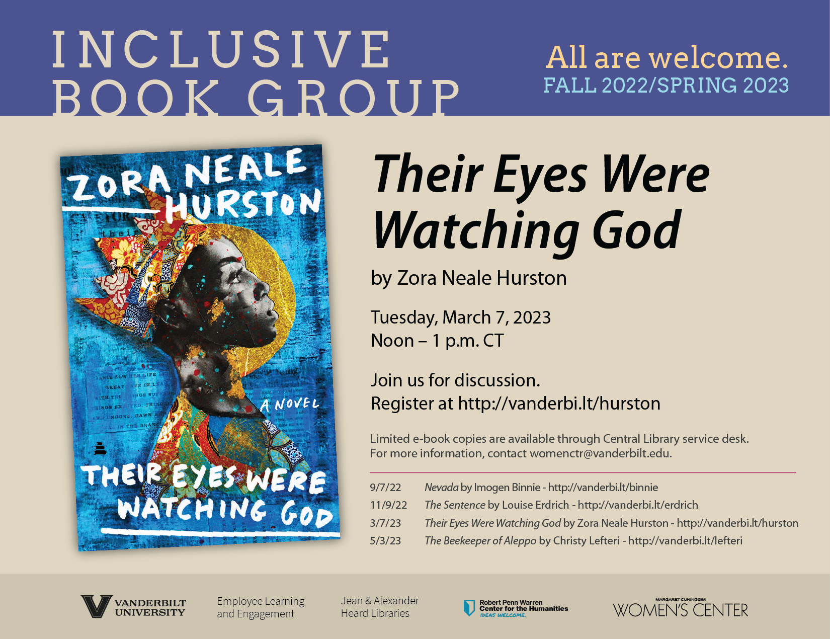 Join us for music, refreshments, celebrations of cultures, luncheons, book discussions, and more.