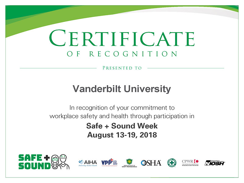 Vanderbilt University is a vibrant community of students, faculty, and staff focused on research, teaching, and service. While the campus has a complex workforce, Vanderbilt is committed to providing a safe and healthy workplace for everyone, from those that live and learn here, to those that work and visit. The Workplace Safety Office's mission is to support the Vanderbilt community through training, technical assistance, and program management. This website is your resource to find information for all of your safety-related needs.